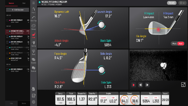 세계 최고 센서 (GCQuad, Trackman, About golf sensor)와 비교 테스트를 통하여 정확도가 검증되었습니다. 또한 Impact 순간의 클럽, 공의 움직임을 실제 영상으로 제공합니다.